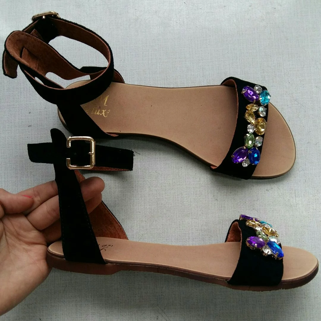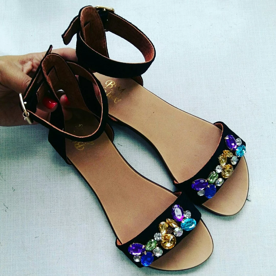Черная замша с цветными камнями/золото с золотой фурнитурой