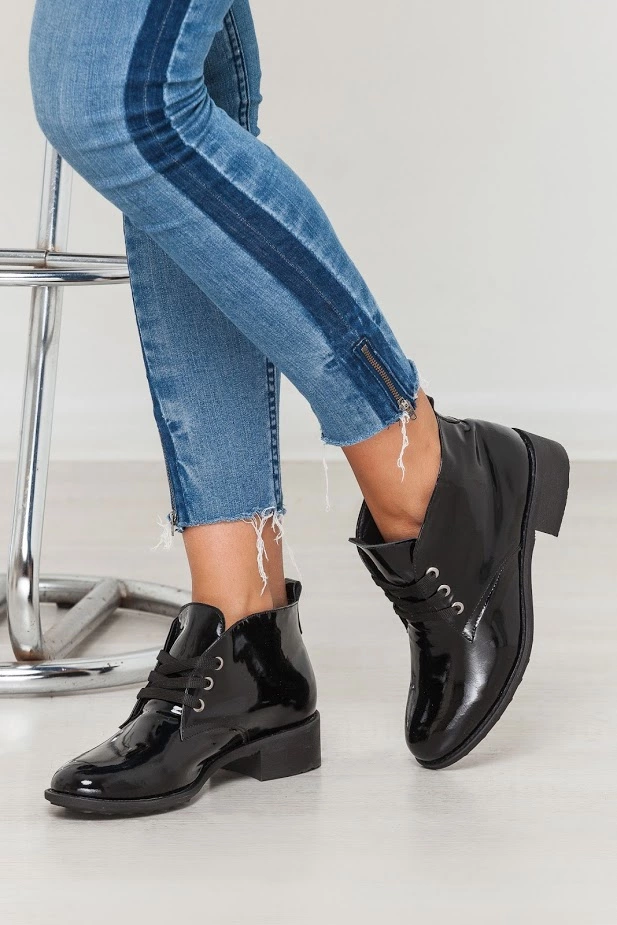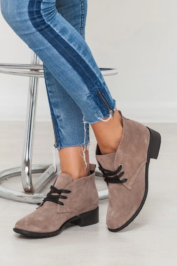 Стильные ботиночки на низком ходу со шнуровкой.