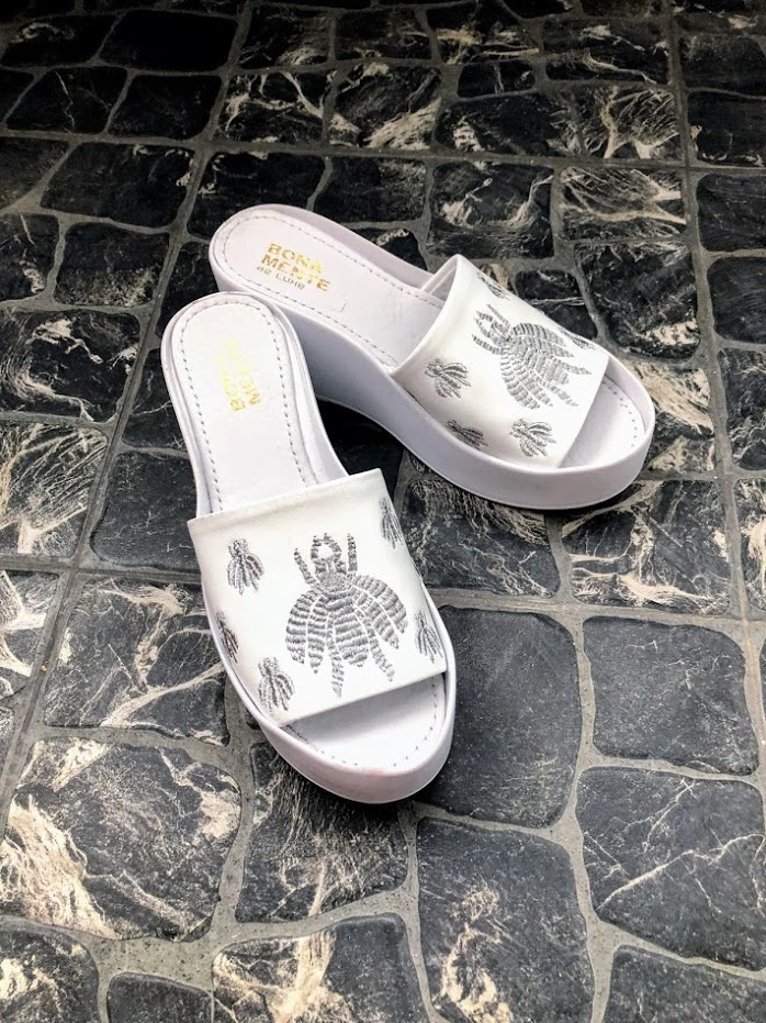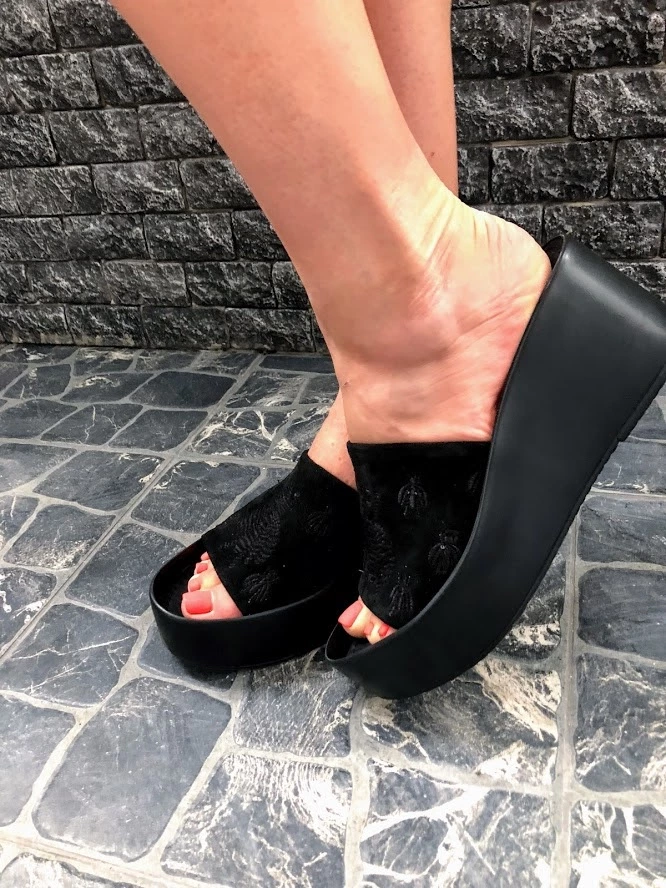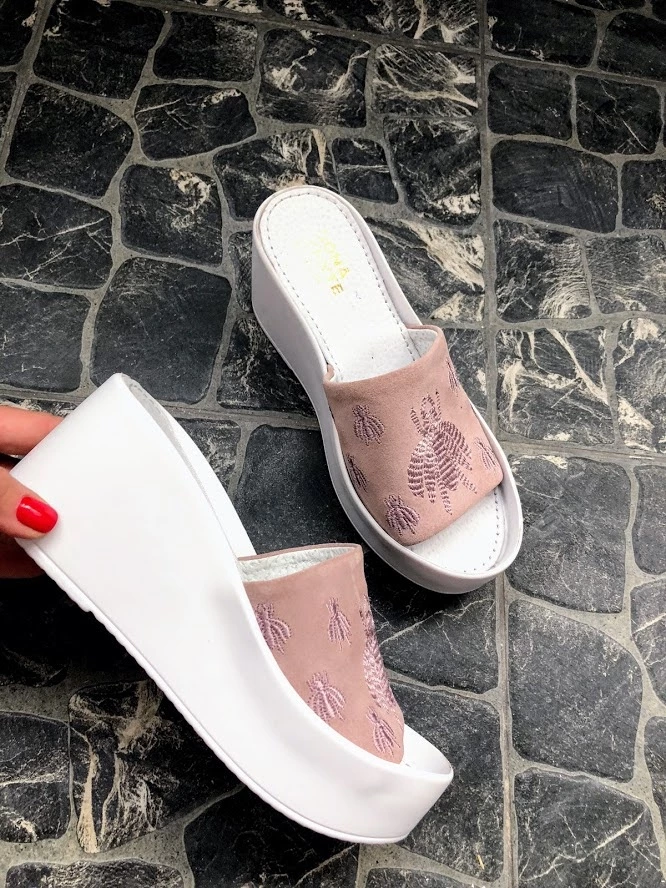 Шлепанцы на толстой подошве с вышивкой 🐜