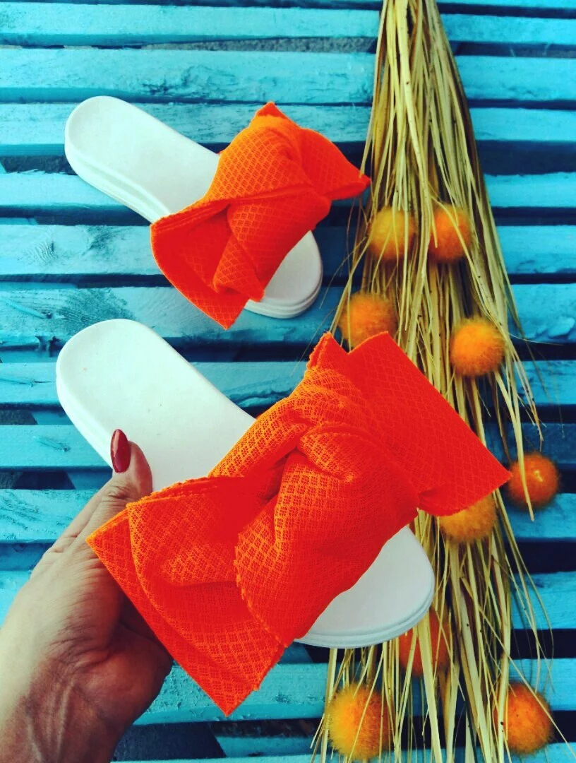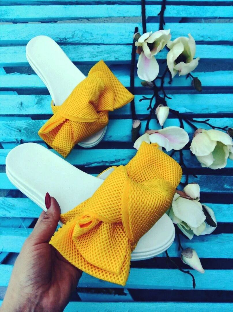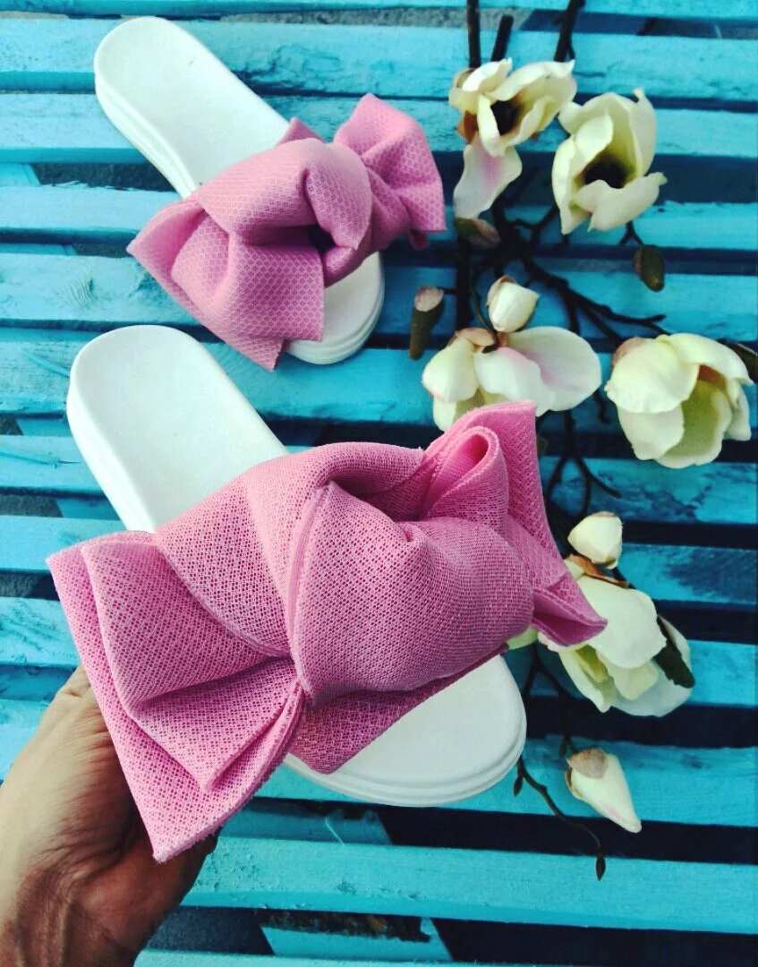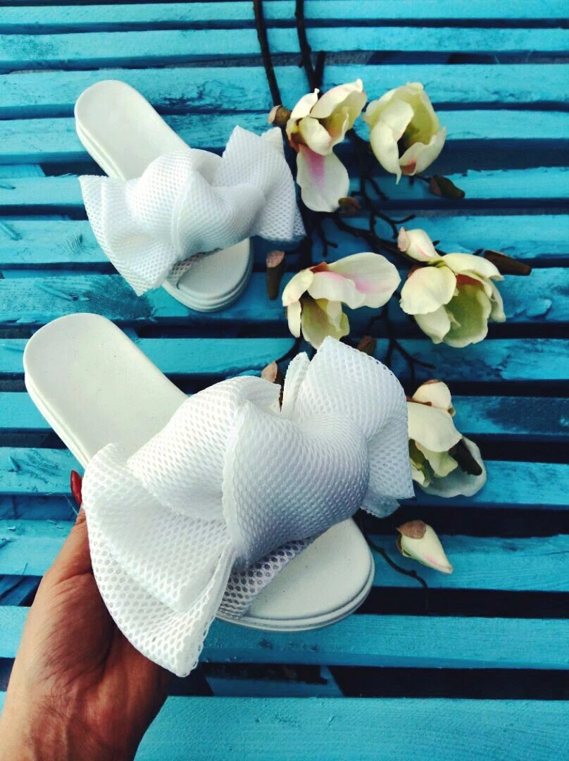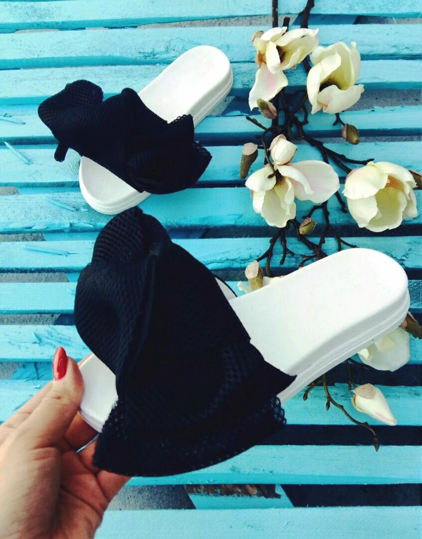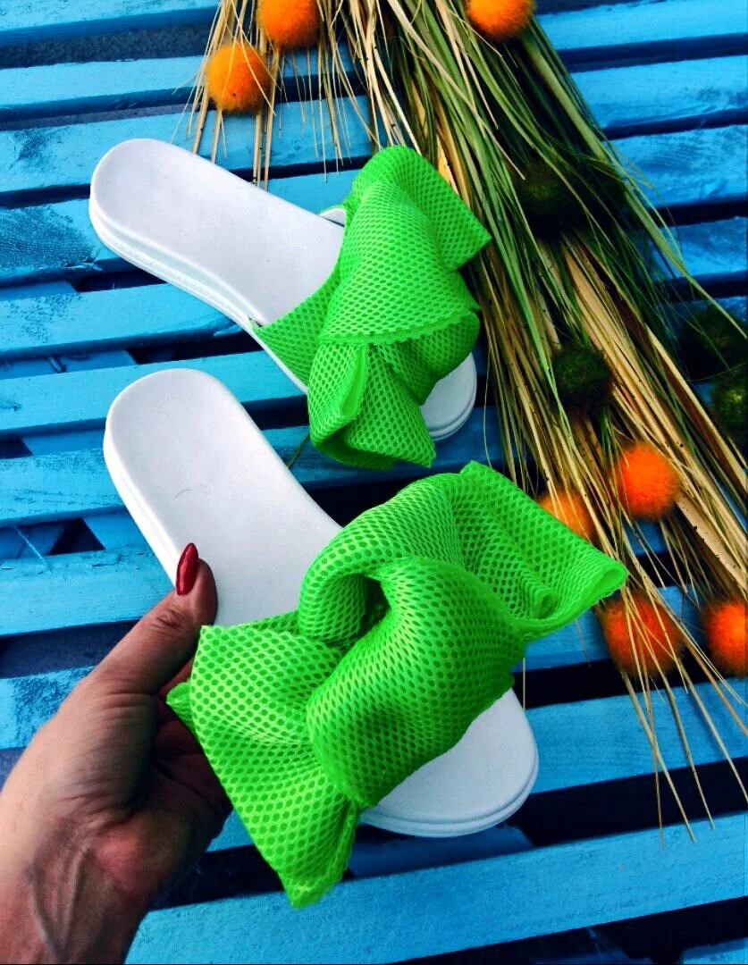 Шлепки с бантом из неопреновой сетки