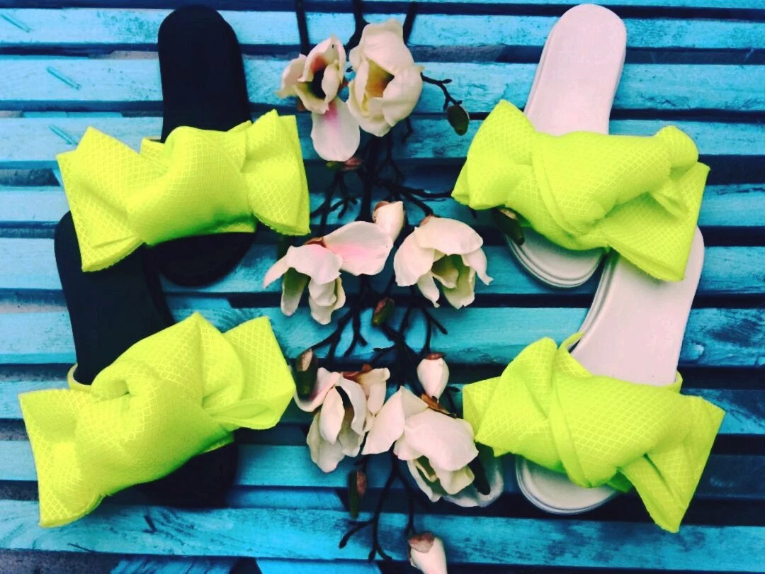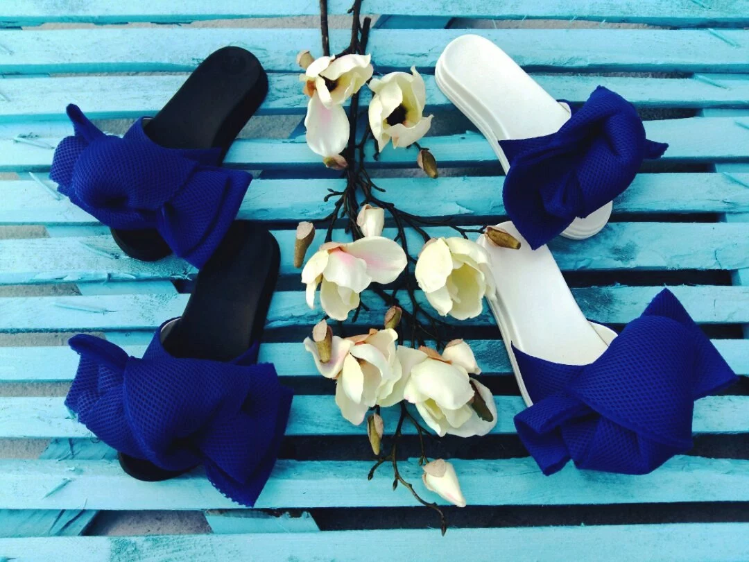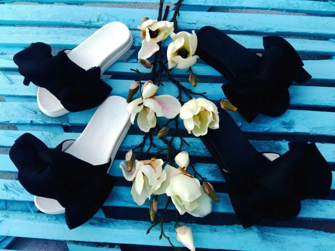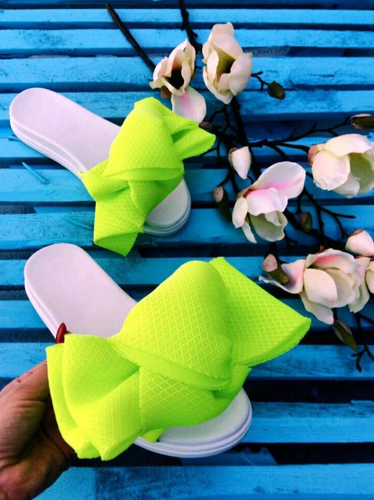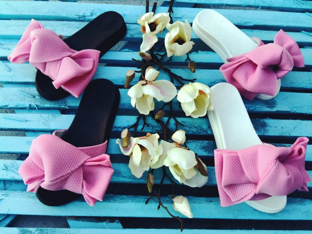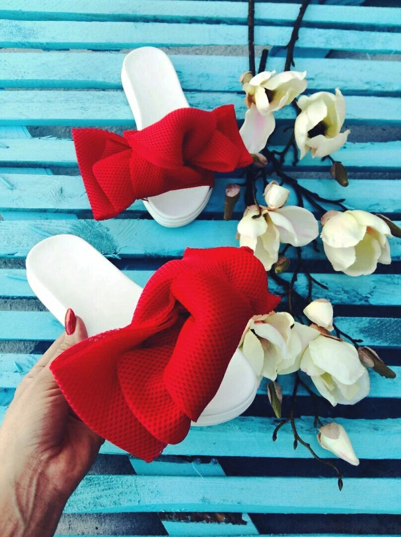Шлепки с бантом из неопреновой сетки