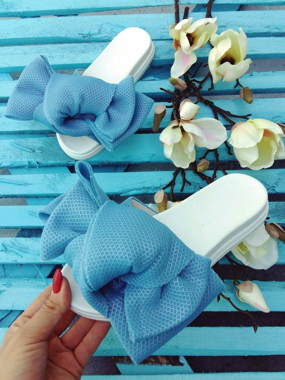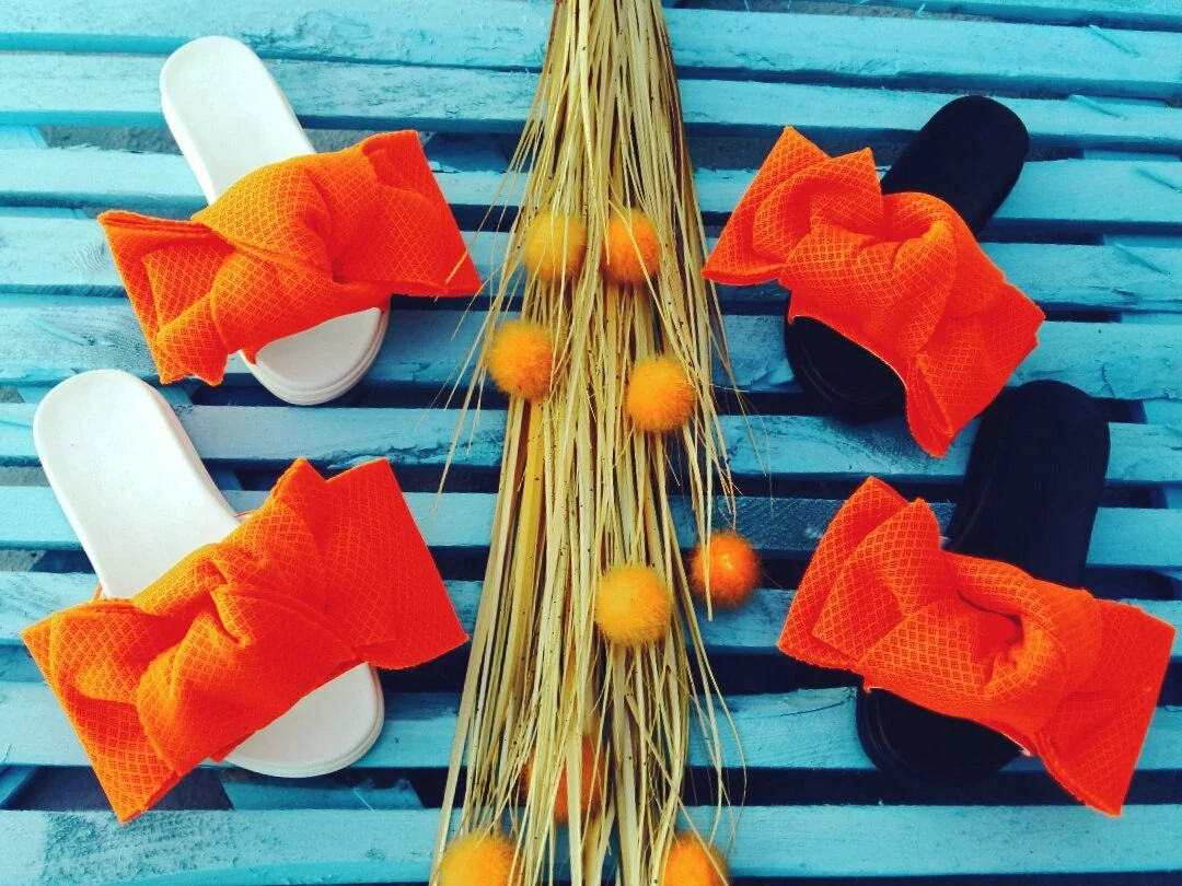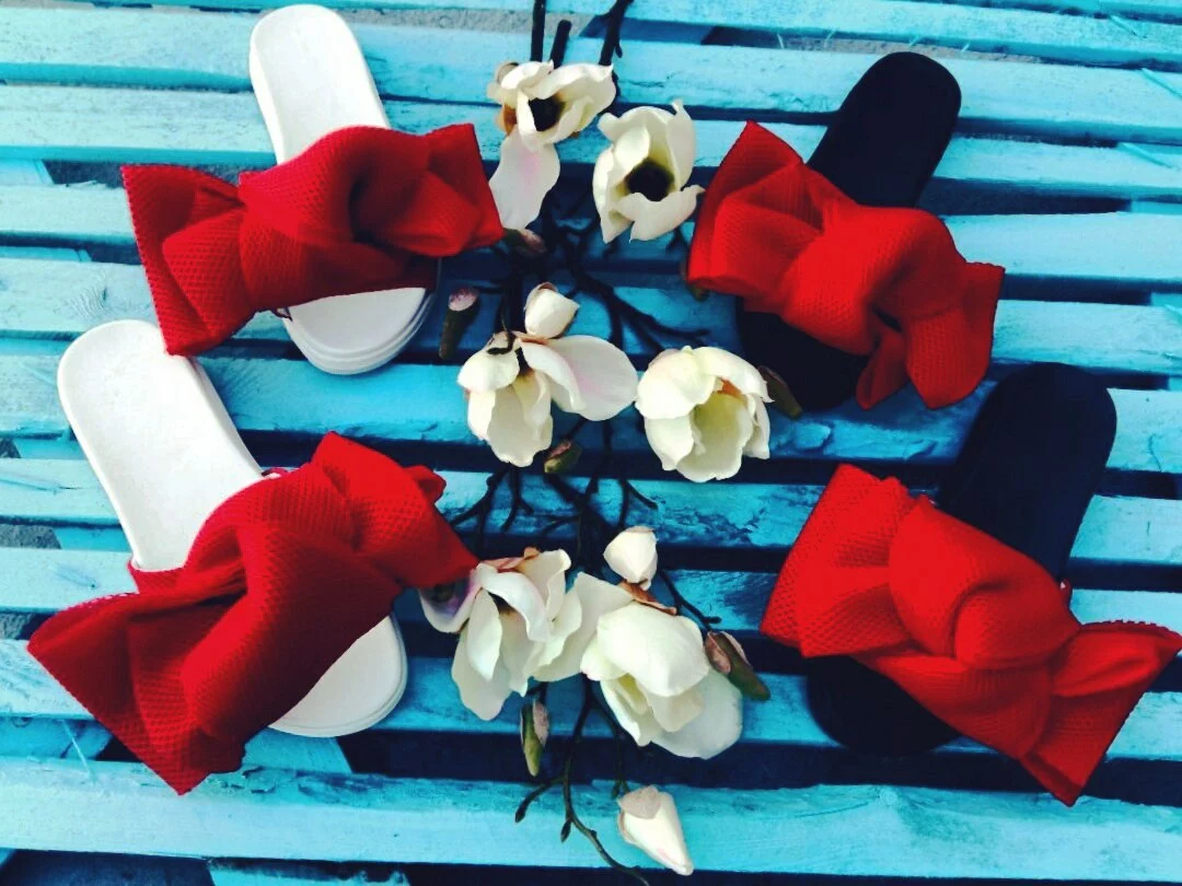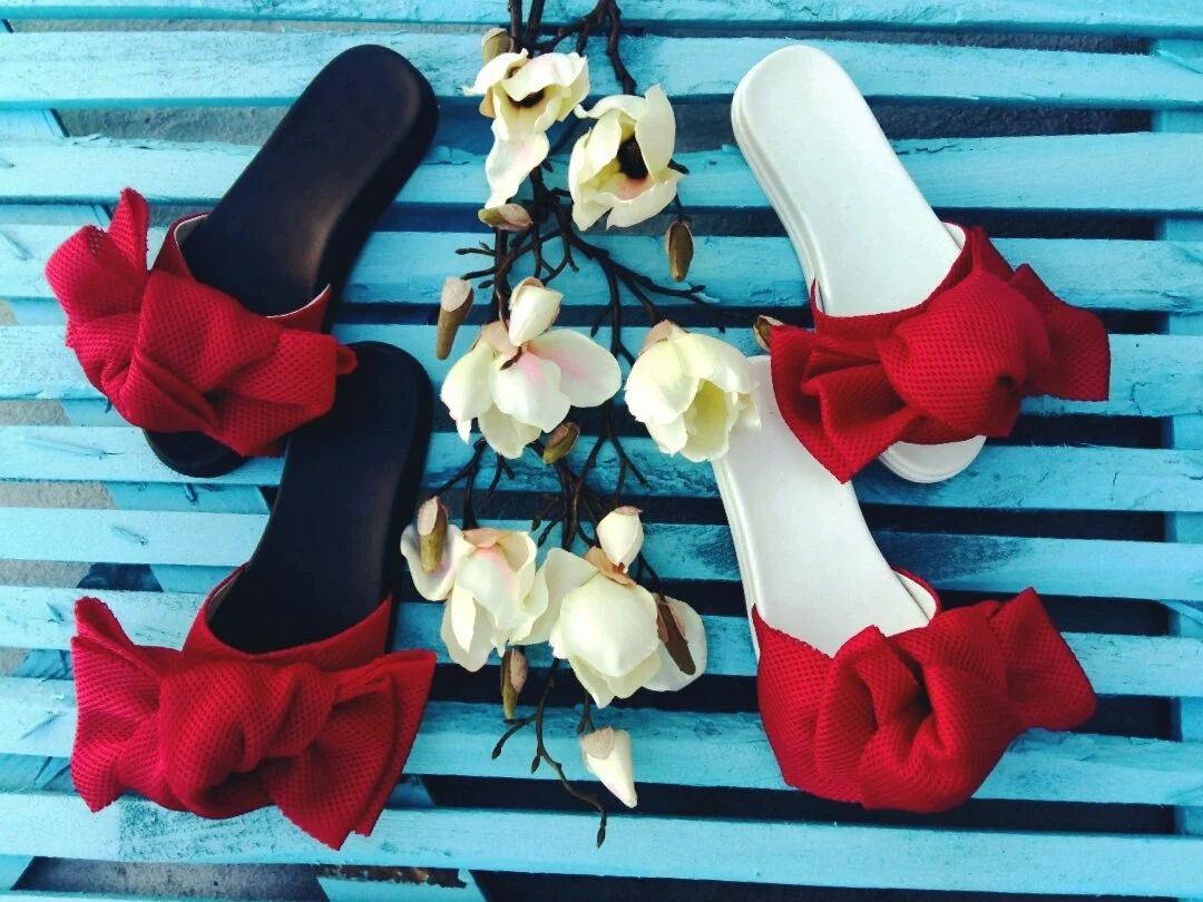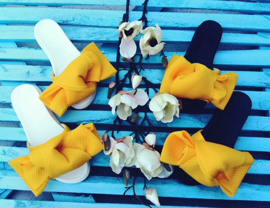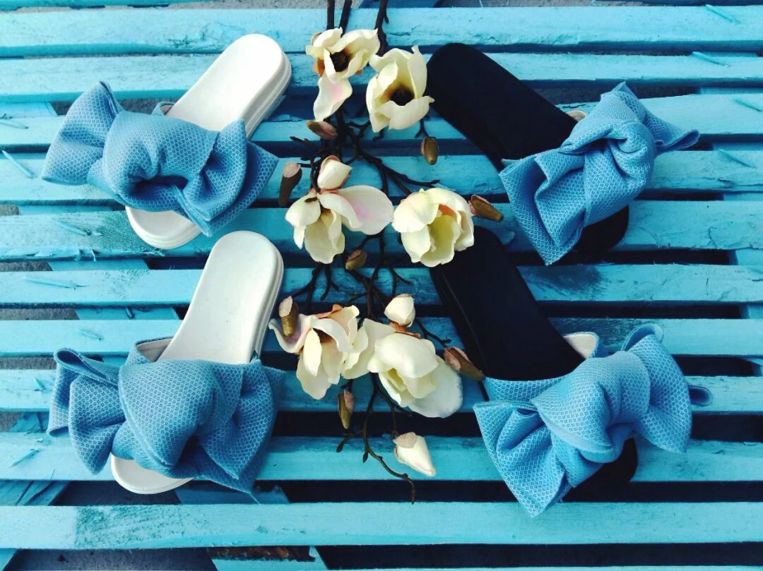 Шлепки с бантом из неопреновой сетки
