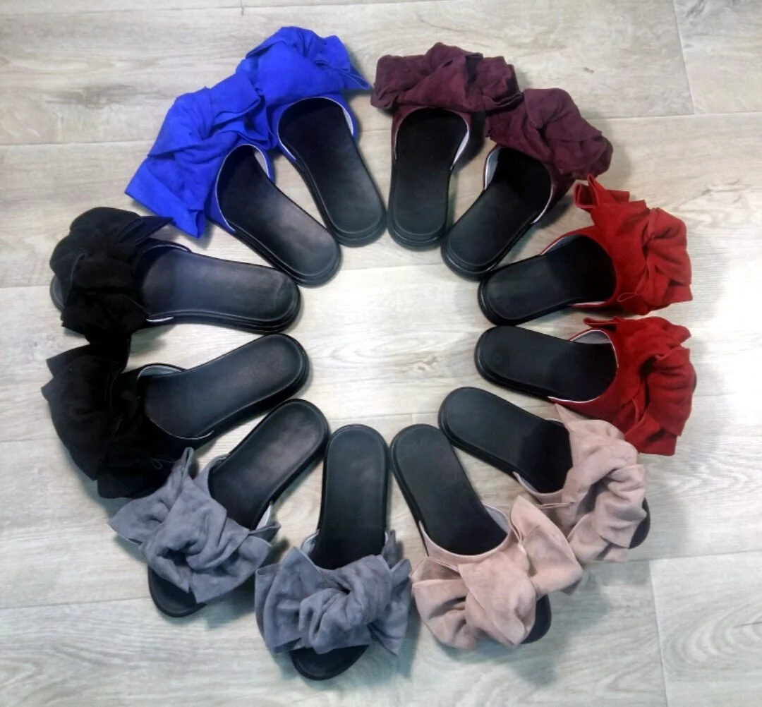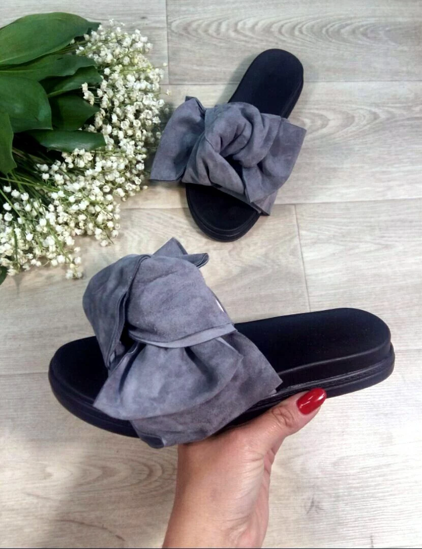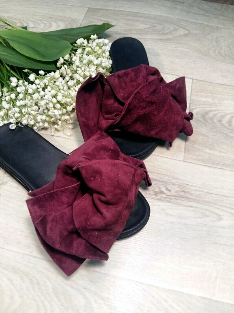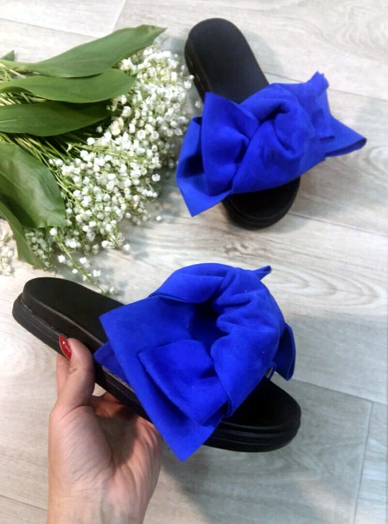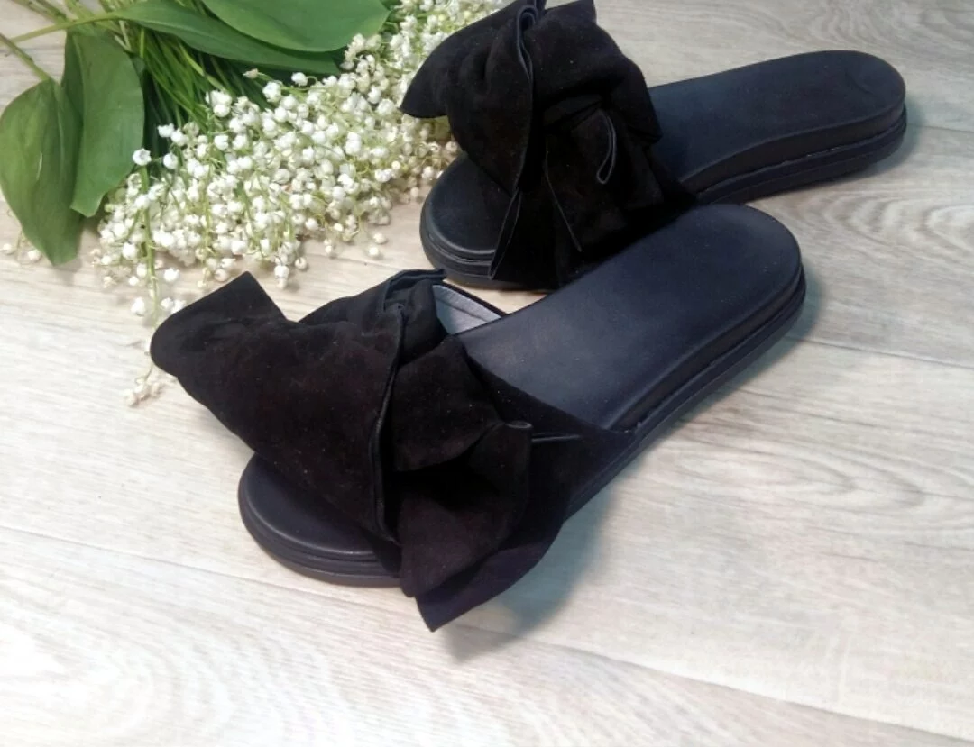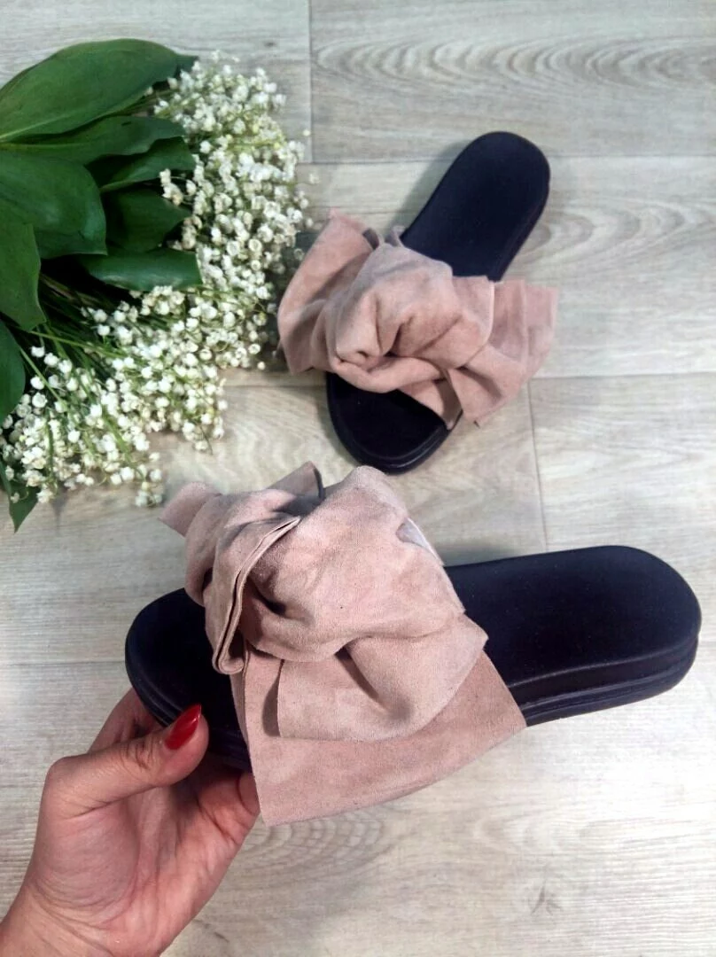 Шлепанцы с бантами из натуральной замши(велюра) ЦВЕТА
