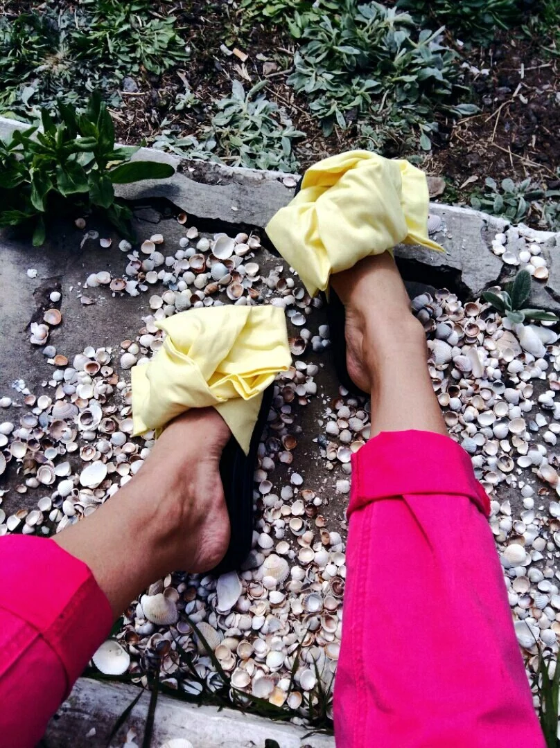 Шлепки с бантом на черной подошве лето 2017 ЦВЕТА