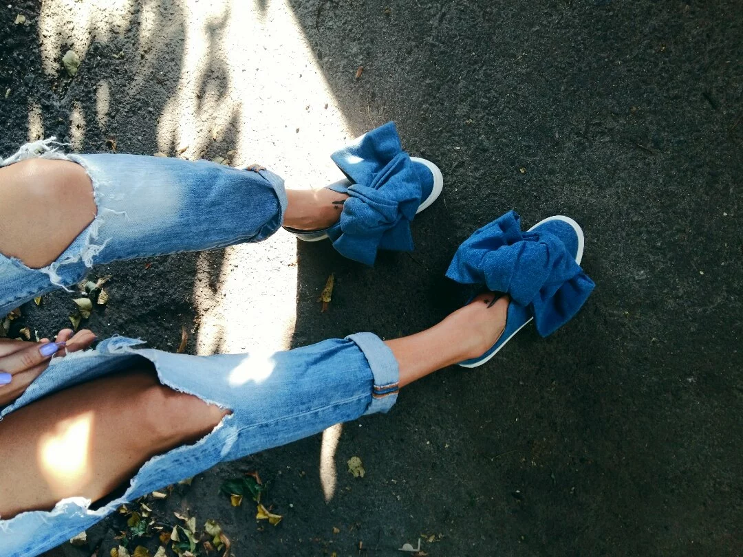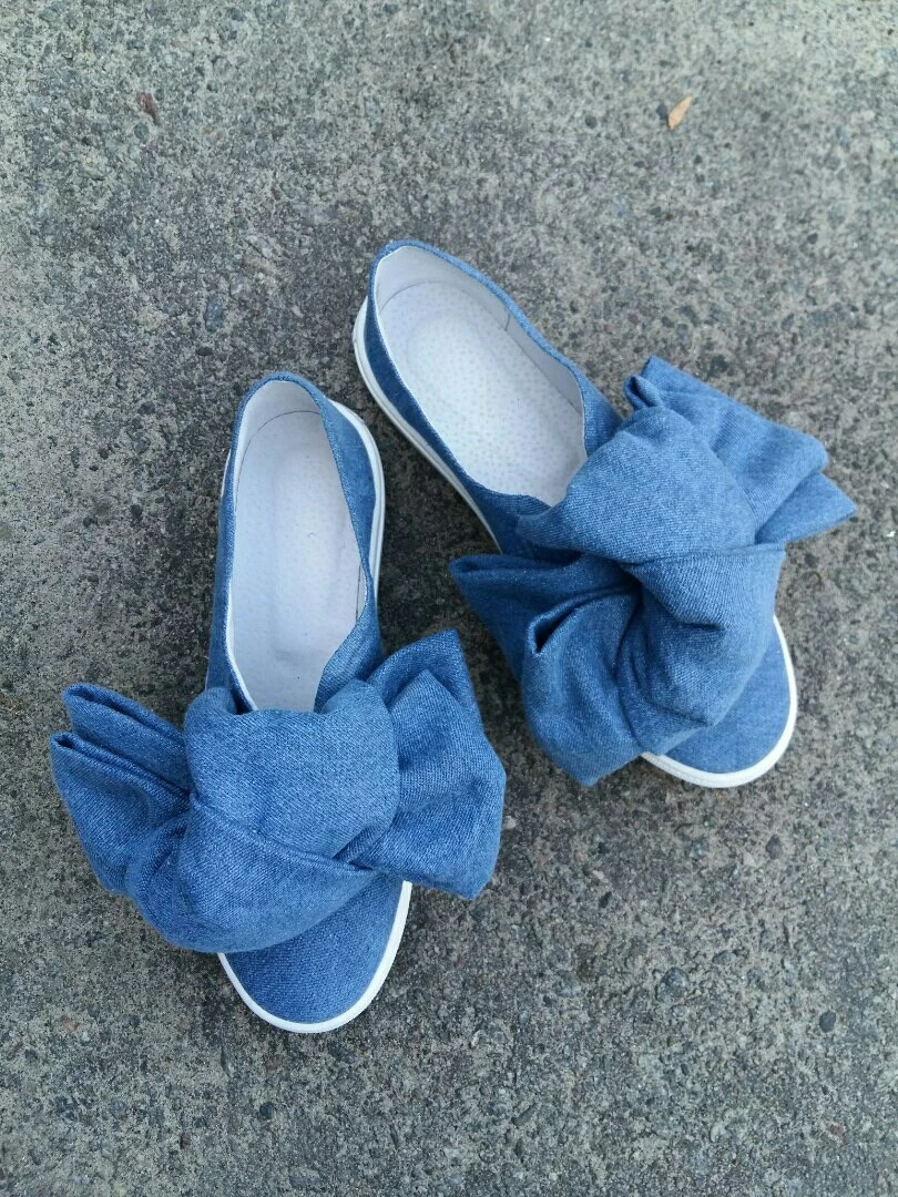 Слипоны с бантом из 100% котона. Доступные цвета: джинс, пудра,