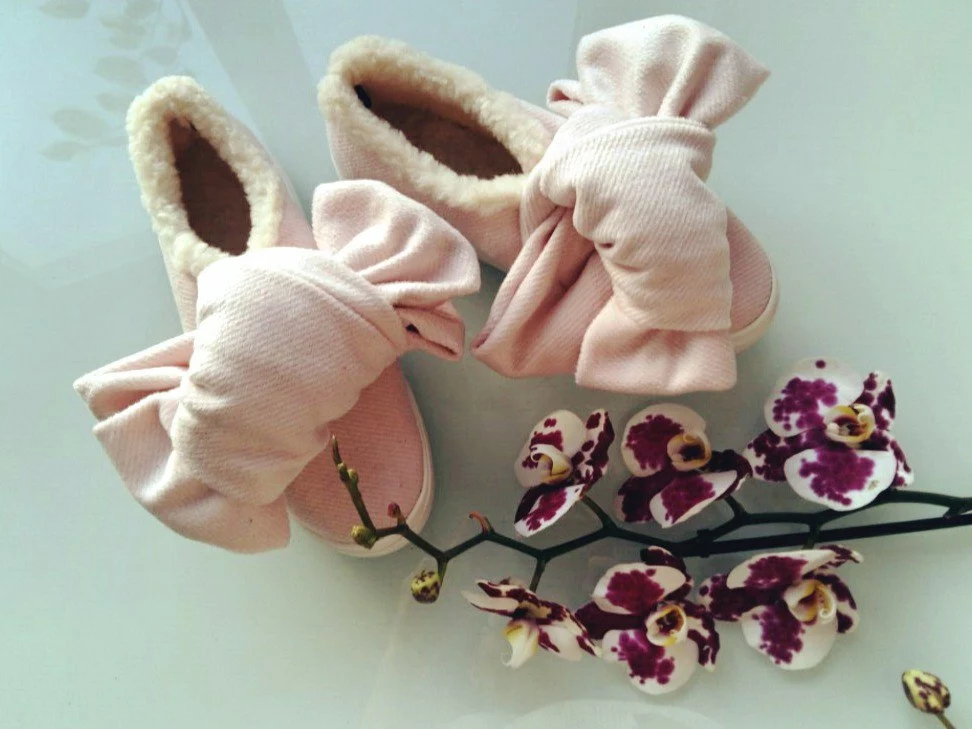 Кашемировые слипоны с бантами цвета марсала/пудра/черный/серый