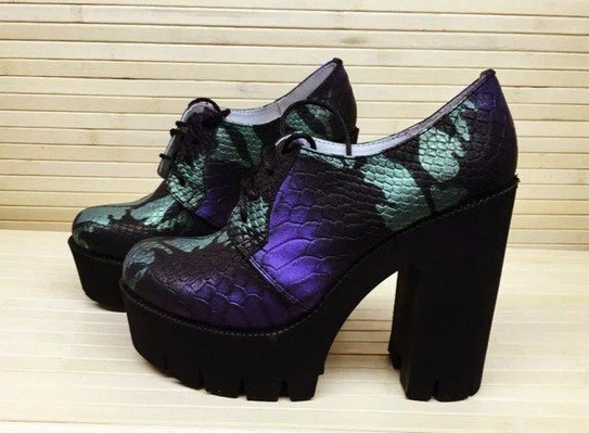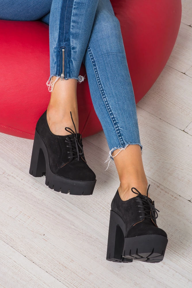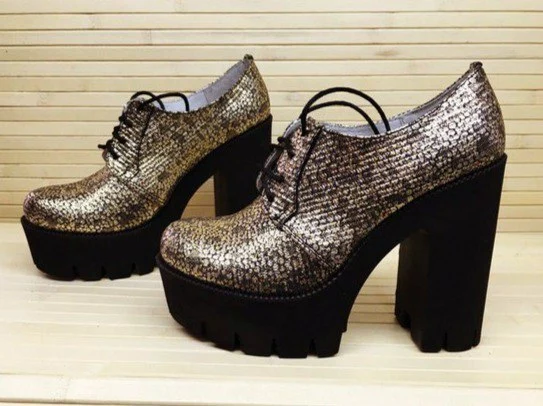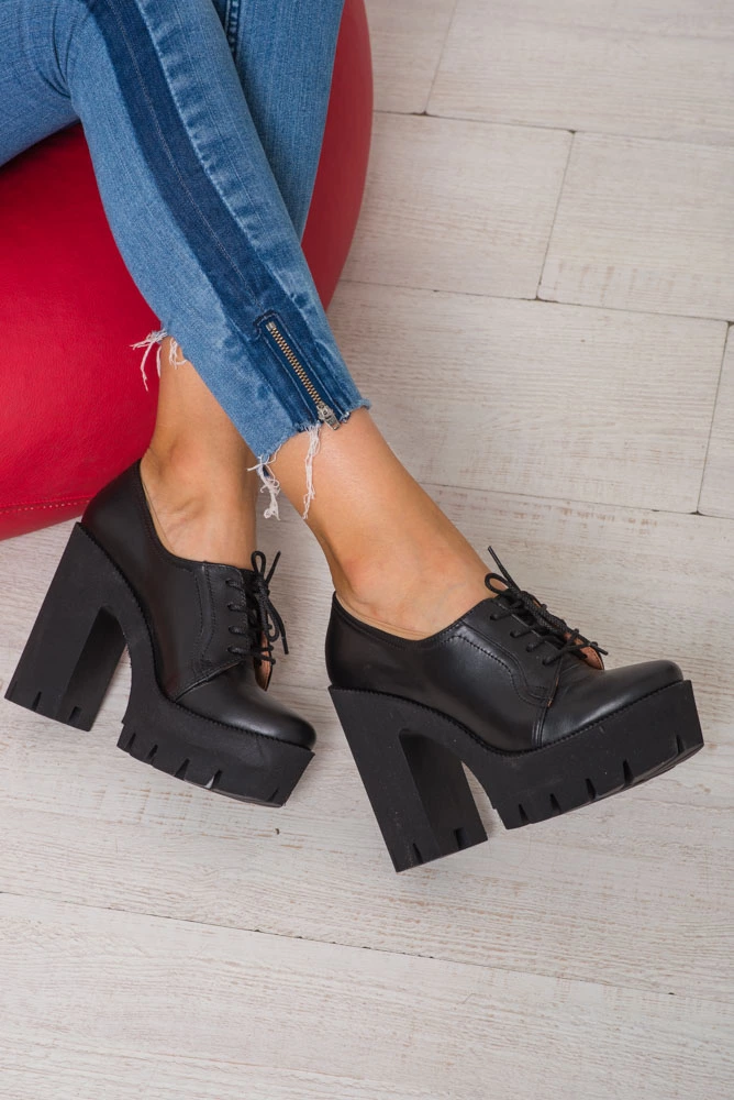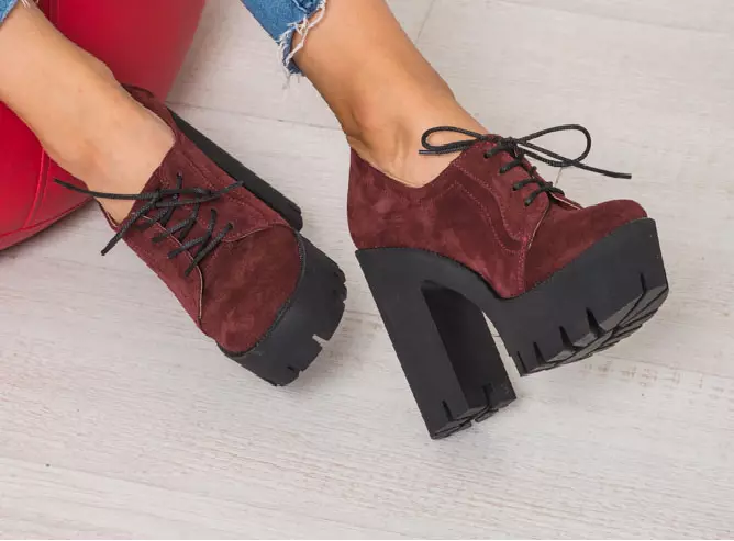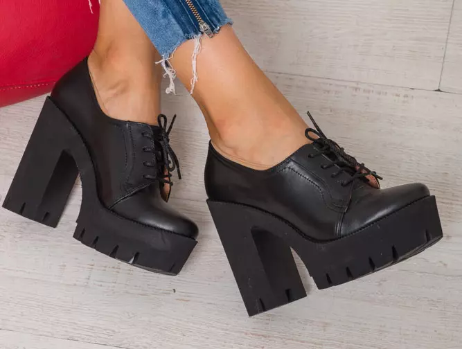 Туфель шнурок на толстом каблуке.