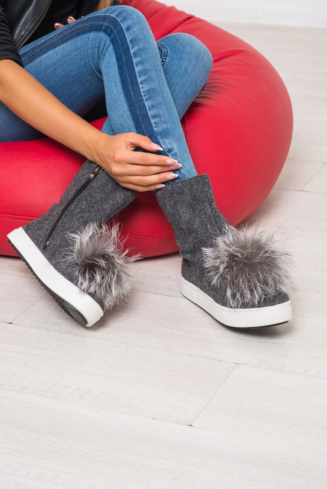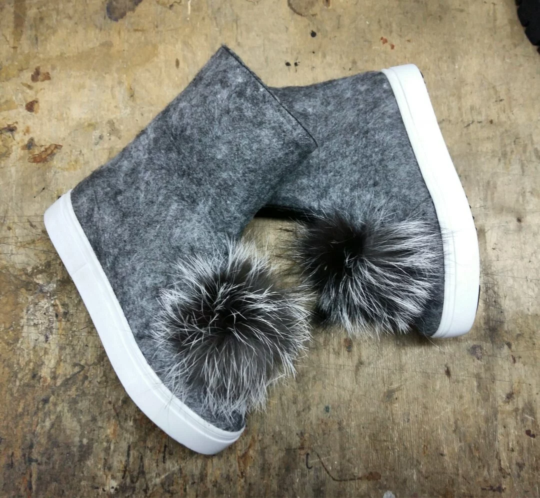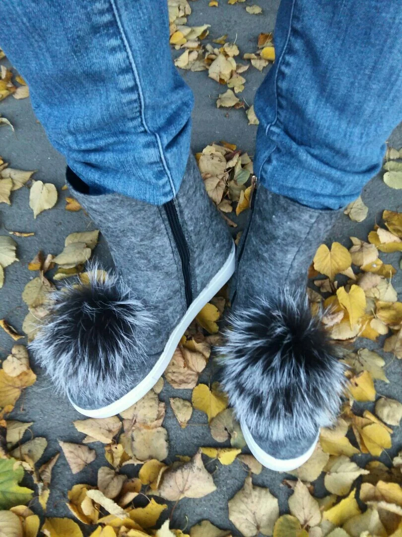 Валяная шерсть с утепленной подкладкой, натуральные меховые помпоны из чернобурки!!!